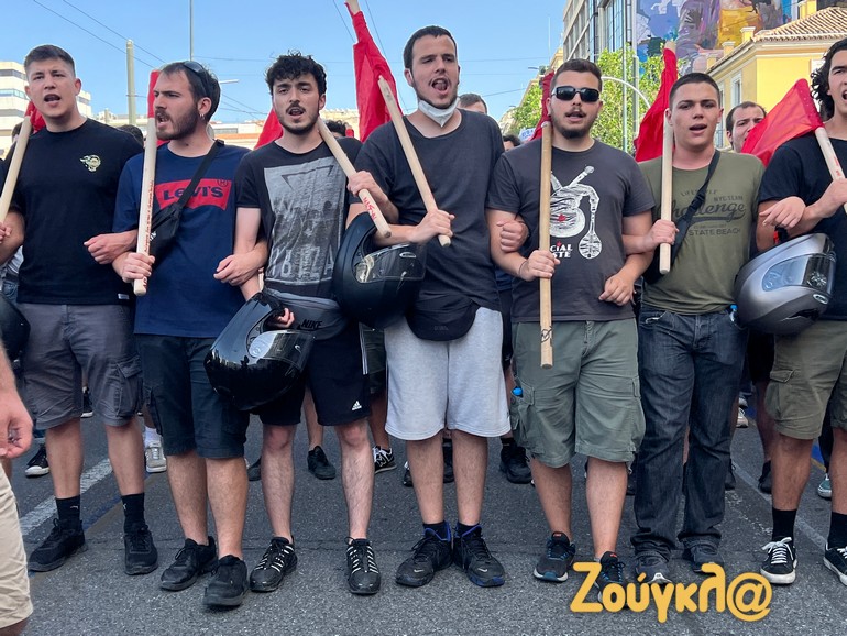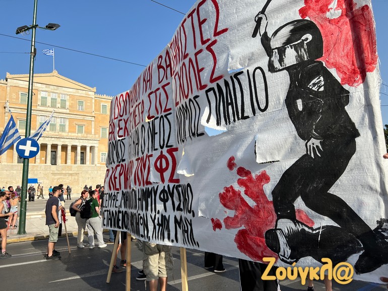 «Λέμε όχι στην αστυνομική βία στο ΑΠΘ. Λέμε έξω τα ΜΑΤ από τις σχολές» ήταν δύο από τα χαρακτηριστικά τους συνθήματα.