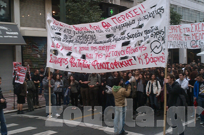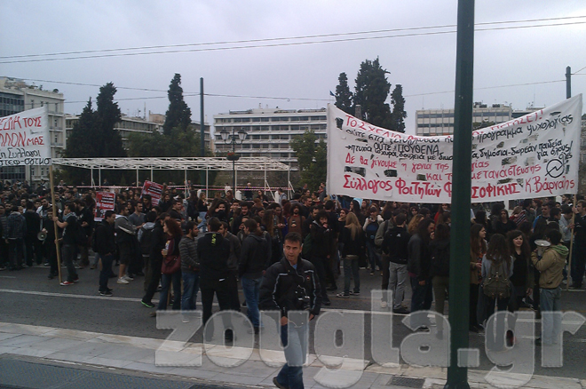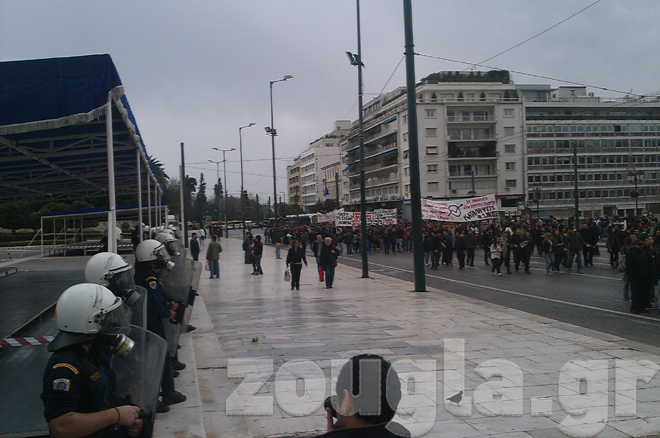 Περίπου 500 φοιτητές διαδήλωσαν στο κέντρο της Αθήνας, ενώ λίγο πριν τις 14.30 η πορεία κατέληξε στη Βουλή.