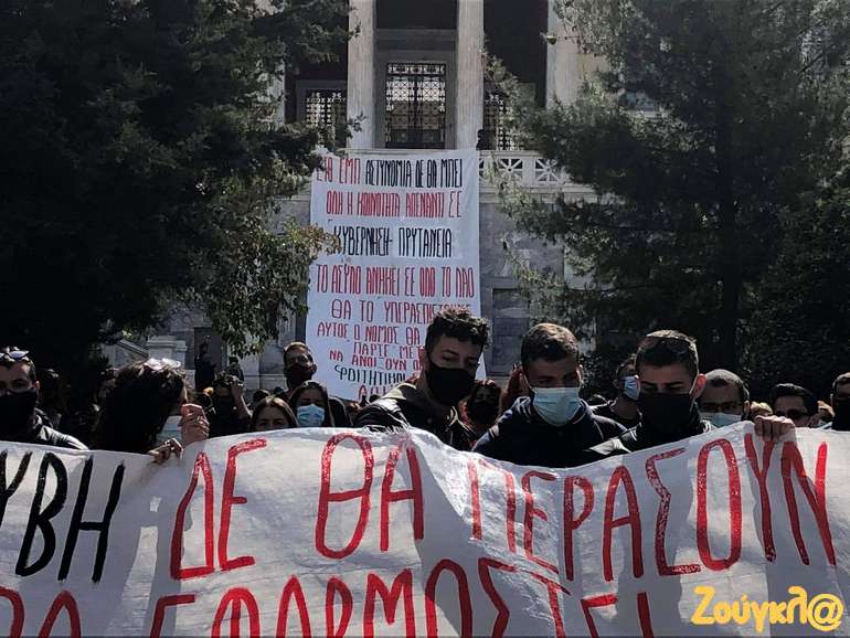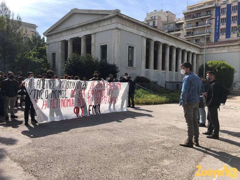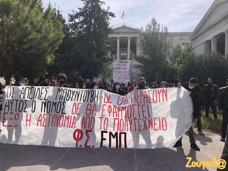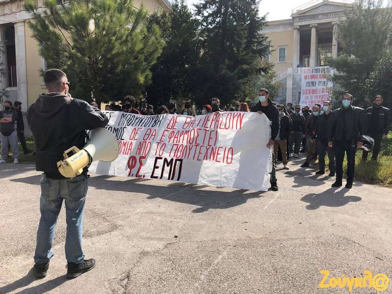 Στην Πατησίων, στο κτήριο του ΕΜΠ, συγκεντρώθηκαν σήμερα Τετάρτη στις 10:30 φοιτητές. Η συγκέντρωση αφορά στον νόμο Κεραμέως-Χρυσοχοΐδη, καθώς και στο αίτημα των φοιτητών να ανοίξουν και πάλι οι σχολές, που τον τελευταίο χρόνο έκλεισαν λόγω της πανδημίας.