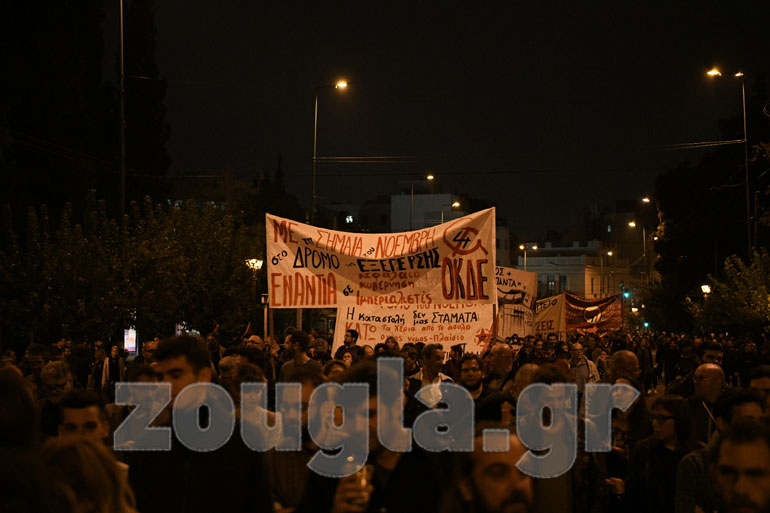 Ολοκληρώθηκε λίγο μετά τις 19.30 το απόγευμα της Κυριακής η καθιερωμένη πορεία προς την πρεσβεία των ΗΠΑ με την οποία κορυφώθηκαν οι τριήμερες εκδηλώσεις μνήμης για την 46η επέτειο της εξέγερσης του Πολυτεχνείου.