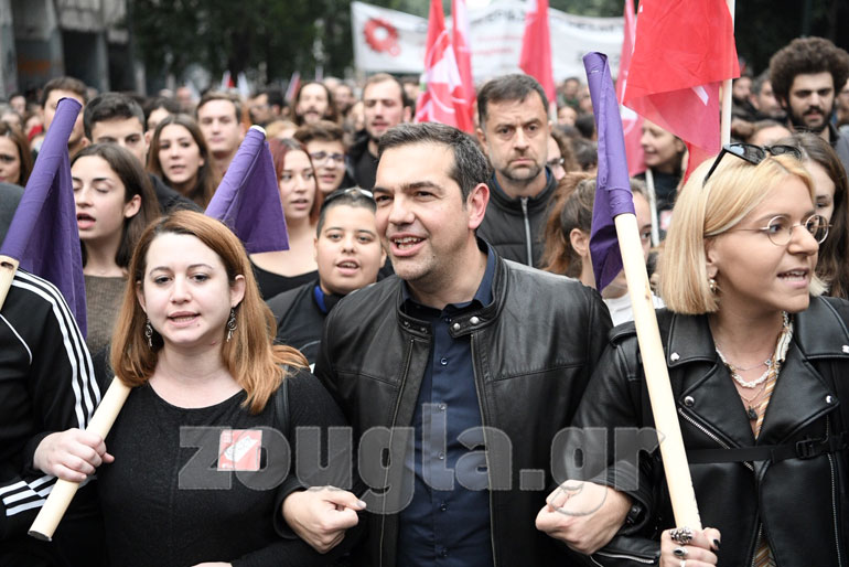 (Ο Αλέξης Τσίπρας στο μπλοκ του ΣΥΡΙΖΑ)