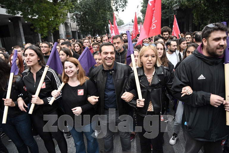 (Ο Αλέξης Τσίπρας στο μπλοκ του ΣΥΡΙΖΑ)