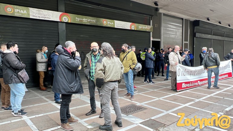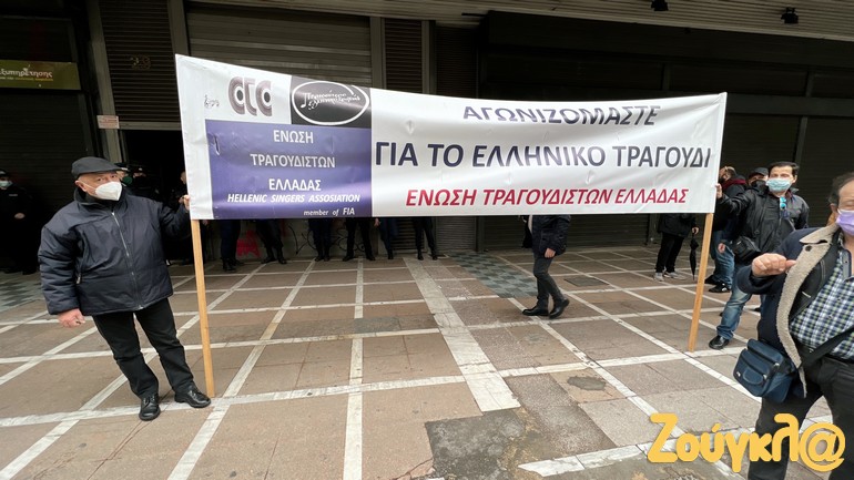 Πορεία πραγματοποίησαν το μεσημέρι της Πέμπτης καλλιτέχνες έξω από το υπουργείο Εργασίας. Οι συγκεντρωμένοι διαμαρτυρήθηκαν για τους μισθούς και τις συμβάσεις στον κλάδο τους.