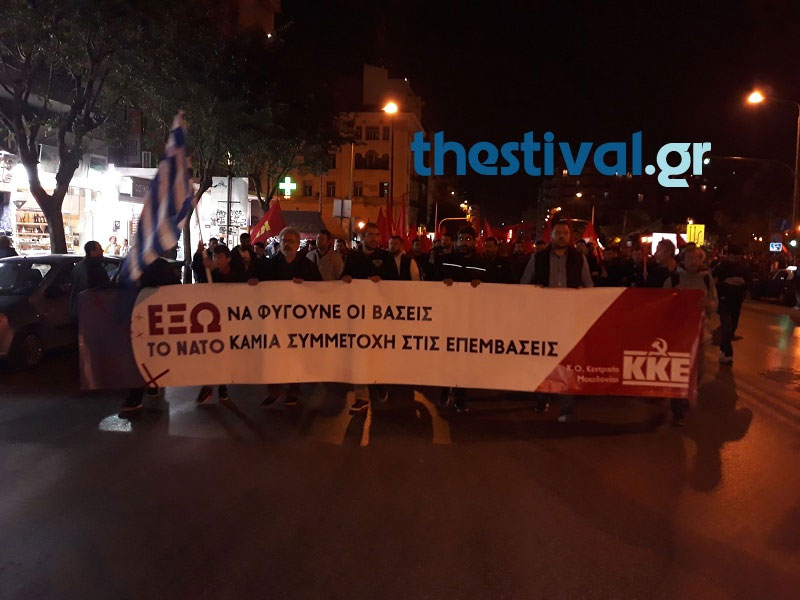 Κύριο αίτημα των διαμαρτυρομένων είναι η έξοδος του ΝΑΤΟ και των βάσεων του από την Ελλάδα.