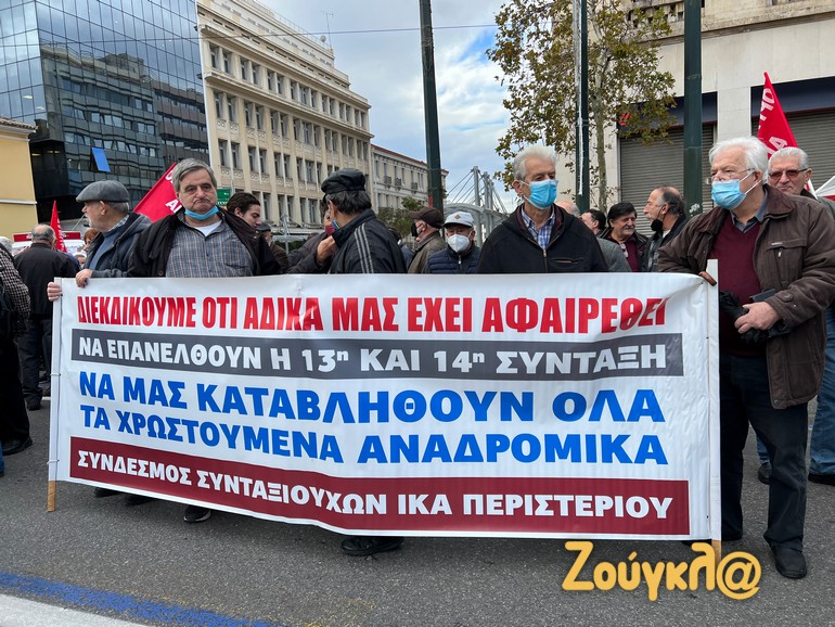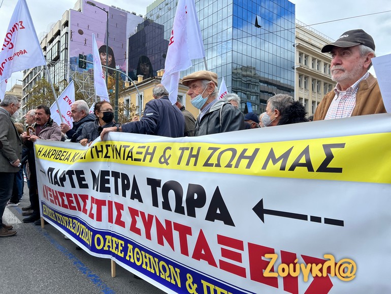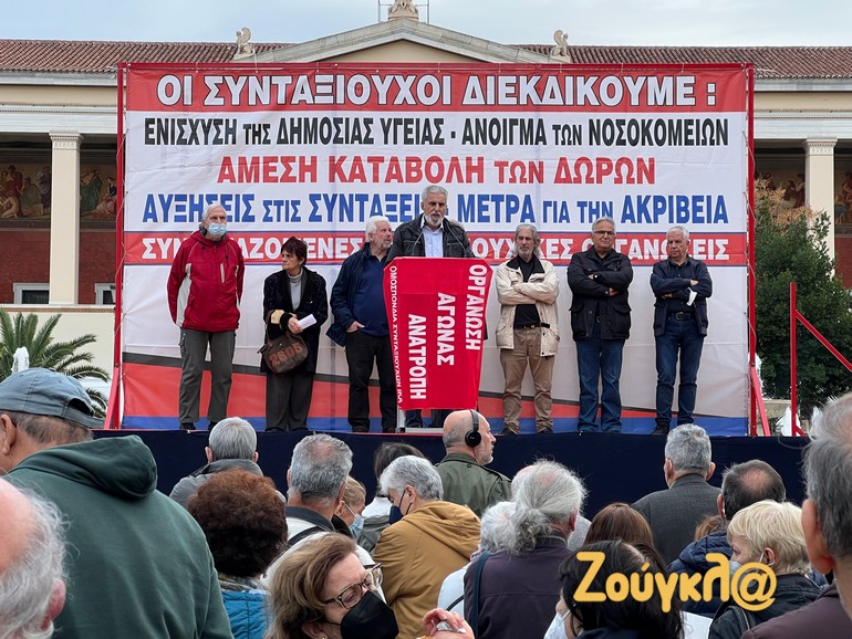 Συγκέντρωση διαμαρτυρίας πραγματοποίησαν σήμερα (12/12) οι συνταξιούχοι στα Προπύλαια στην Αθήνα, με αιτήματα σχετικά με τις συντάξεις, αλλά και με άλλα κρατικά ζητήματα. Οι συνταξιούχοι ζητούσαν ουσιαστικές αυξήσεις στις συντάξεις, μέτρα στήριξης για το κύμα ακρίβειας και δωρεάν Υγεία.
