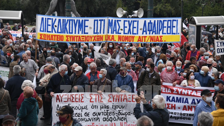 Πανελλαδική συγκέντρωση πραγματοποιούν στην πλατεία Κλαυθμώνος με πορεία προς το Μέγαρο Μαξίμου οι συνταξιουχικές ενώσεις (Δημοσίου – OAEE – ΙΚΑ – ΠΟΣΕ ΟΑΕΕ – ΕΛΤΑ – ΟΣΕ –– ΠΕΣ ΝΑΤ– ΠΣΣ Δικηγόρων – ΠΟΣΕΑ ΕΤΕΑΠ – ΕΣΤΑΜΕΔΕ) με απόφαση της Ομοσπονδίας τους ΠΑΣΣΕΑΤ.
