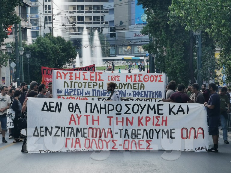 Με κεντρικό σύνθημα «Δεν θα πληρώσουν οι εργαζόμενοι και πάλι την κρίση», οι διαδηλωτές συλλογικοτήτων της εξωκοινοβουλευτικής Αριστεράς συγκεντρώθηκαν στα Χαυτεία για να κατευθυνθούν στη Βουλή, διαμαρτυρόμενοι για τα νέα αντεργατικά μέτρα.