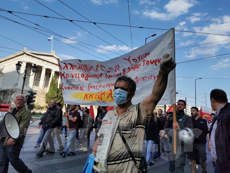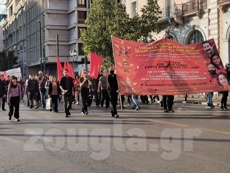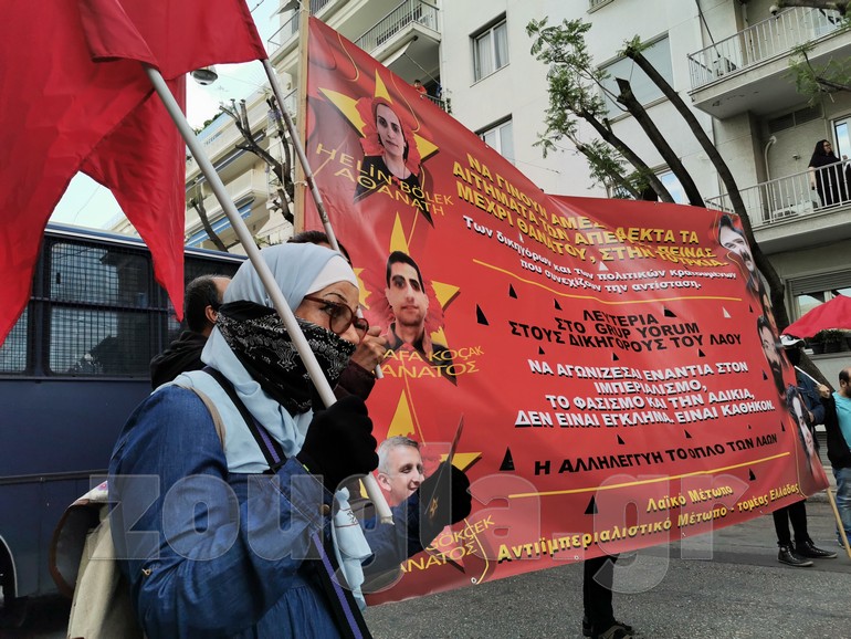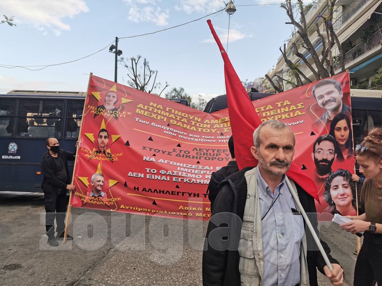 Συγκέντρωση στα Προπύλαια και πορεία στην Τουρκική Πρεσβεία πραγματοποίησαν την Τρίτη το απόγευμα αλληλέγγυοι στα μέλη του συγκροτήματος της τούρκικης Αριστεράς Grup Yorum, Helin Bölek, Mustafa Koçak και İbrahim Gökçek, που κατέληξαν μετά από πολυήμερη απεργία πείνας μέσα στις φυλακές διαμαρτυρόμενοι για την άγρια καταστολή και στις φυλακίσεις του καθεστώτος Ερντογάν.