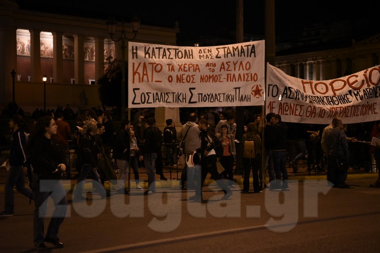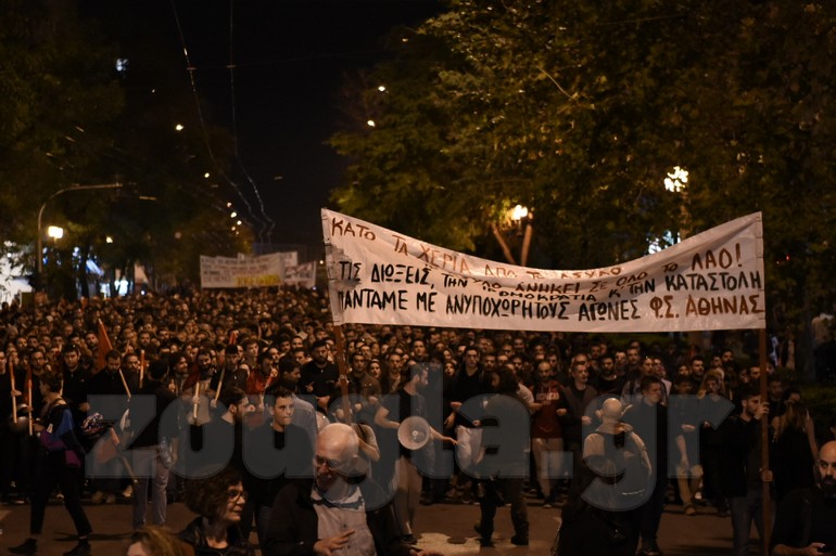 Πορεία διαμαρτυρίας για την κατάργηση του ασύλου και για τα όσα συνέβησαν σήμερα στο Οικονομικό Πανεπιστήμιο πραγματοποίησαν το απόγευμα της Δευτέρας οι φοιτητές.
