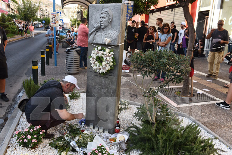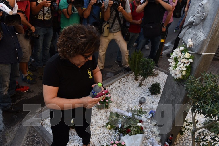 Συγκινητική η στιγμή που η μητέρα του Παύλου Φύσσα καταθέτει ένα γράμμα στο μνημείο του αδικοχαμένου γιου της.
