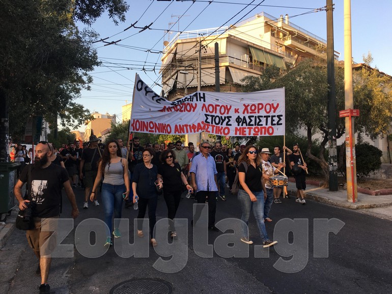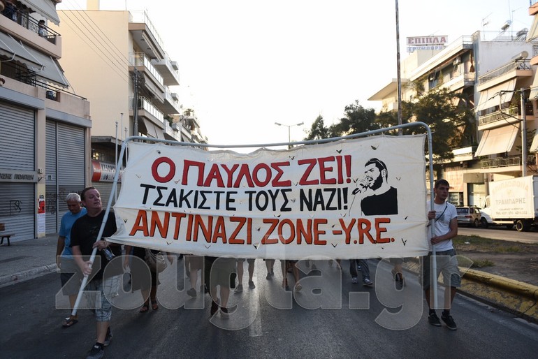 Με κεντρικό σύνθημα “Ο Παύλος ζει τσακίστε τους Ναζί” οι διαδηλωτές διαμαρτυρήθηκαν για την δολοφονία του αδικοχαμένου 34χρονου τον Σεπτέμβριο του 2013 και καταδίκασαν όσες φασιστικές συμπεριφορές έχουν εκδηλωθεί τα τελευταία χρόνια. Παρόντες στη συγκέντρωση ήταν και η οικογένεια του Παύλου Φύσσα.