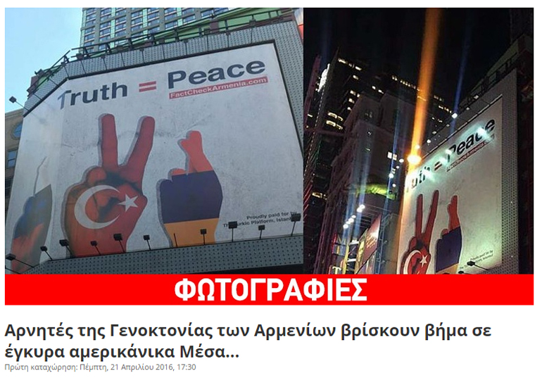 Με αφορμή την 101η επέτειο της Γενοκτονίας των Αρμενίων (24 Απριλίου), και με με αίτημα την αναγνώριση της Γενοκτονίας από την Τουρκία, Αρμένιοι της Αθήνας πραγματοποίησαν πορεία μνήμης από το Σύνταγμα με κατάληξη την πρεβεία της Τουρκίας, την Κυριακή 24 Απριλίου 2016.