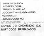 Πρόκειται για την τραπεζική κάρτα της εταιρείας G TANKER στην τράπεζα BARODA του Ντουμπάι και μέρος της ανάλυσης του λογαριασμού όπου εμφανίζεται η εταιρεία EXPRESS ENERGY, συμφερόντων Βαγγέλη Μαρινάκη, από την οποία και εστάλησαν μεταξύ άλλων και τα επίμαχα 409.963 δολάρια.