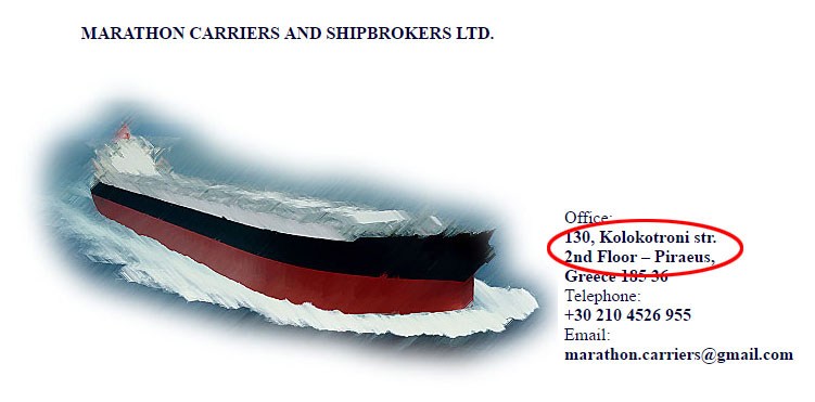 (Η διεύθυνση της εταιρείας Marathon επί της οδού Κολοκοτρώνη 130 στον Πειραιά)