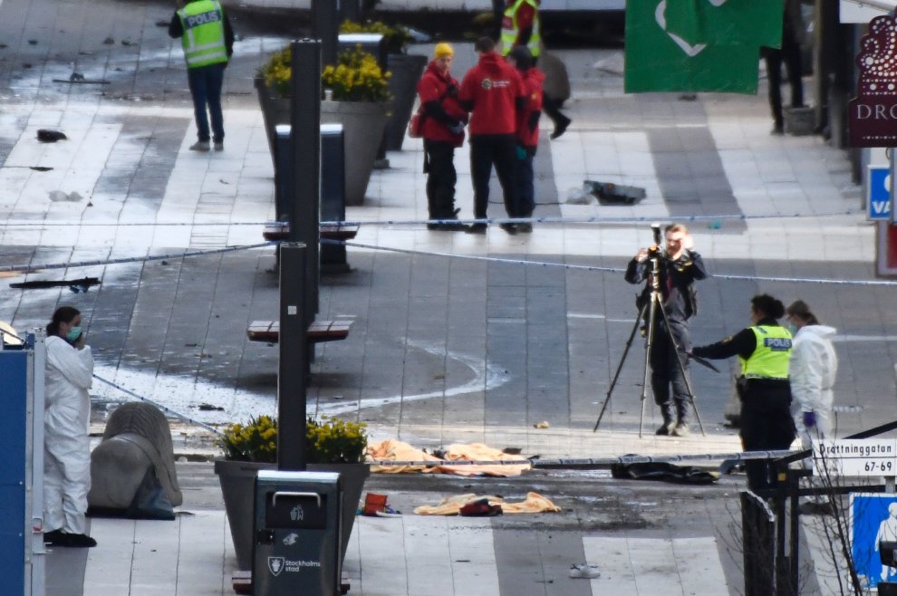 Κατά το συμβάν τουλάχιστον πέντε άνθρωποι έχασαν τη ζωή τους, ενώ απροσδιόριστος είναι ακόμη ο αριθμός των τραυματιών (ανέρχεται πιθανότατα σε δεκάδες). Η σουηδική αστυνομία κάλεσε αμέσως τους πολίτες να αποφεύγουν επισκέψεις στο κέντρο της πόλης, ενώ ο πρωθυπουργός σε επίσημες δηλώσεις του μίλησε για τρομοκρατικό χτύπημα, χωρίς ωστόσο να δώσει πληροφορίες για την εθνικότητα ή την καταγωγή των τρομοκρατών.