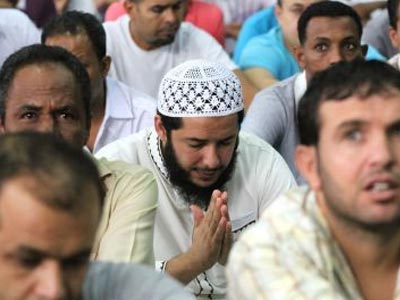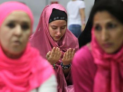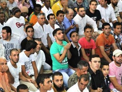 Με μια σεμνή τελετή γιόρτασαν εκατοντάδες μουσουλμάνοι τη λήξη του Ραμαζανιού σε μια αίθουσα του Ολυμπιακού Σταδίου που παραχωρήθηκε για αυτό το σκοπό.