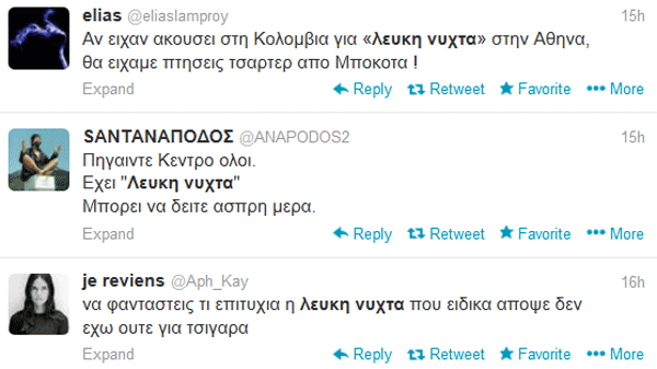 Με σαρκαστικά σχόλια και χιούμορ υποδέχτηκαν οι χρήστες του Τwitter τη χθεσινή «Λευκή Νύχτα» που διοργανώθηκε στην Αθήνα.
