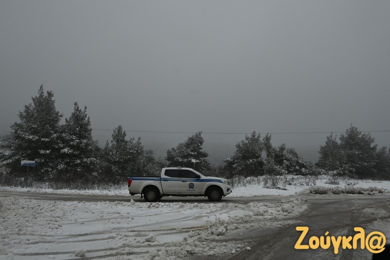 Αστυνομικές δυνάμεις με περιπολικά βρίσκονται στην εθνική οδό και στις εξόδους της, ελέγχοντας τόσο τα οχήματα που διέρχονται προς την Ιπποκράτειο Πολιτεία αν φέρουν αντιολισθητικές αλυσίδες και παράλληλα απομακρύνουν τα φορτηγά από την εθνική οδό, στέλνοντας τα από τους παραδρόμους.