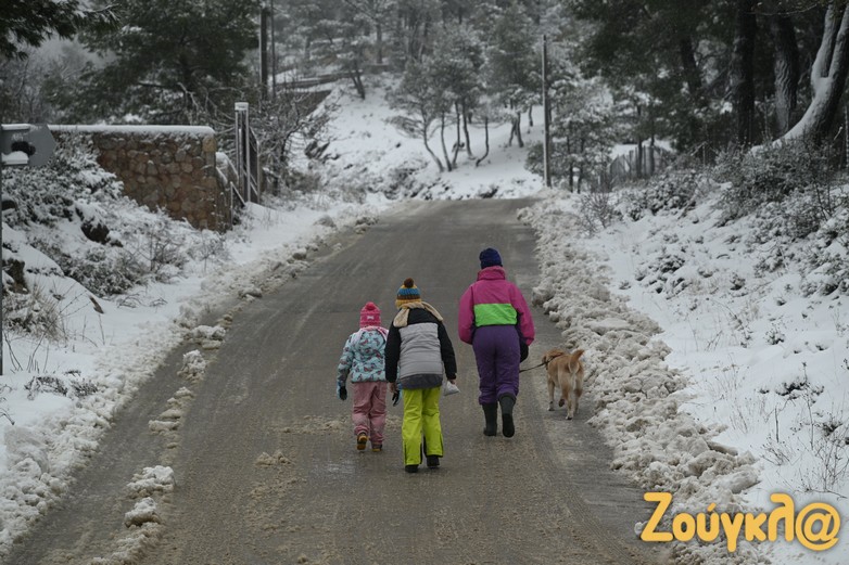 Πολλές οικογένειες με τα παιδιά τους έχουν φθάσει στην περιοχή και απολαμβάνουν το χιόνι παίζοντας χιονοπόλεμο και φτιάχνοντας χιονάνθρωπους.