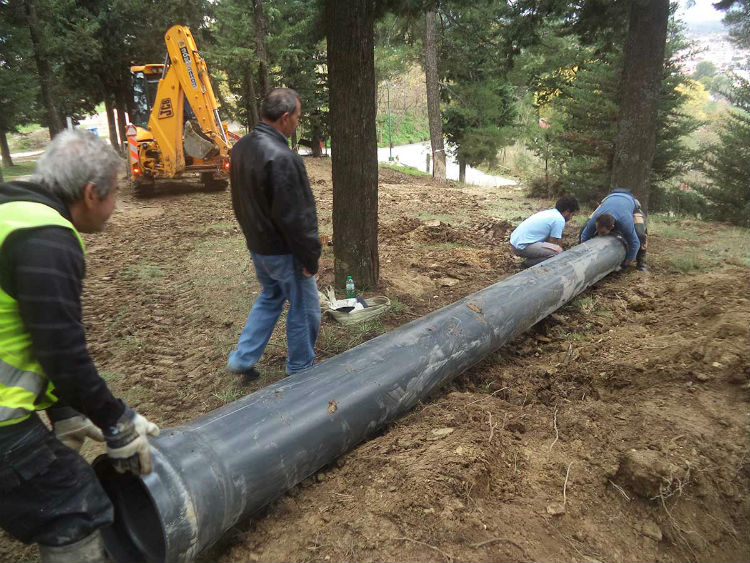 Ο αγωγός παρουσίασε ρωγμή και γύρω στις 7.00 το πρωί άρχισε το νερό να… κατηφορίζει προς την πόλη μέσα από το οδικό δίκτυο.
