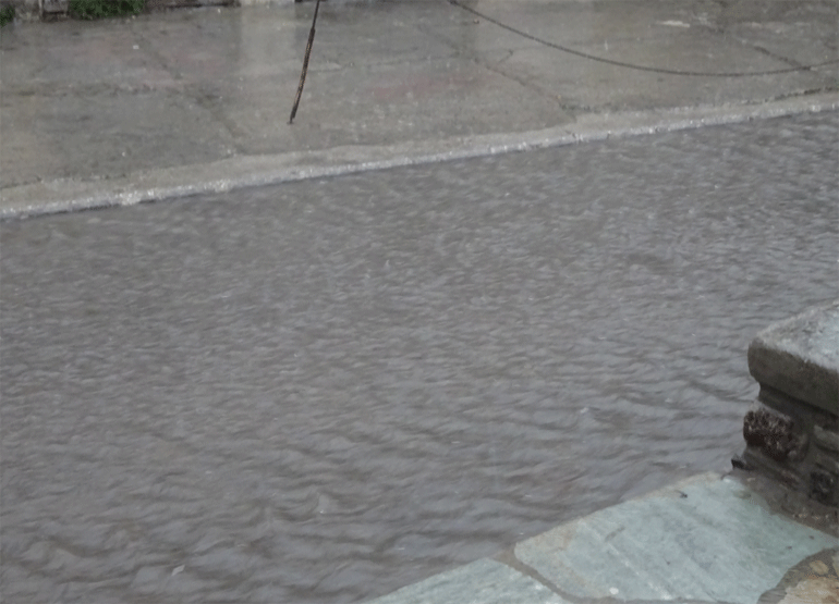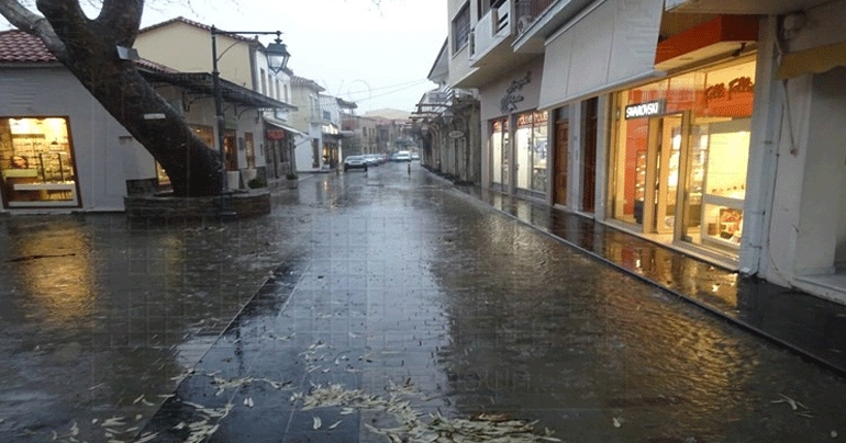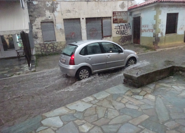 Σε ποτάμια μετατράπηκαν μέσα σε λίγα λεπτά το πρωί της Τρίτης οι δρόμοι της Μύρινας λόγω των έντονων καιρικών φαινομένων που πλήττουν τη Λήμνο.