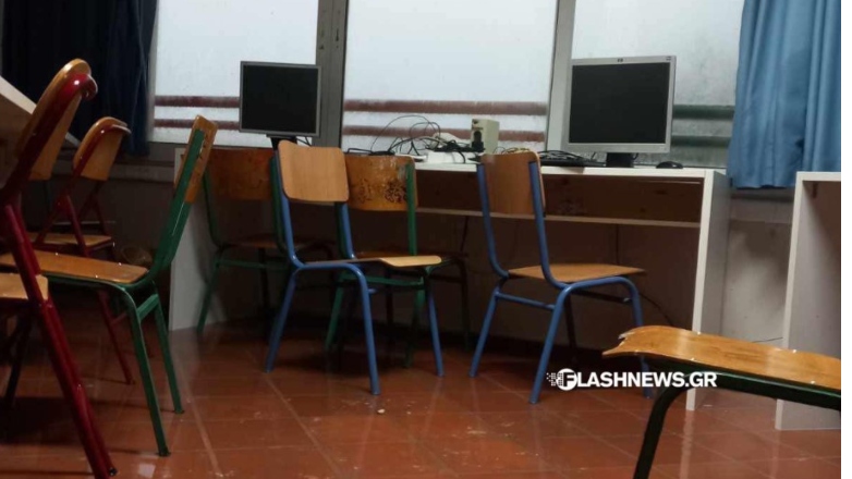 Προβλήματα με πλημμυρισμένες αίθουσες υπήρξαν και στο Γυμνάσιο «Ελ.Βενιζέλου» στα Χανιά.
