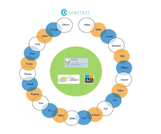 Σημειώνεται πως το όνομα του συγκεκριμένου μετεωρολογικού συστήματος επιλέχθηκε από την ΕΜΥ σε συνεργασία με την αντίστοιχη υπηρεσία της Κύπρου και του Ισραήλ. Όπως διευκρίνισε ο κ. Ανανδρανιστάκης, από εδώ και στο εξής θα δίνονται συγκεκριμένα ονόματα στα συστήματα κακοκαιρίας, τα οποία μπορούν να προκαλέσουν προβλήματα, που είναι τα παρακάτω: