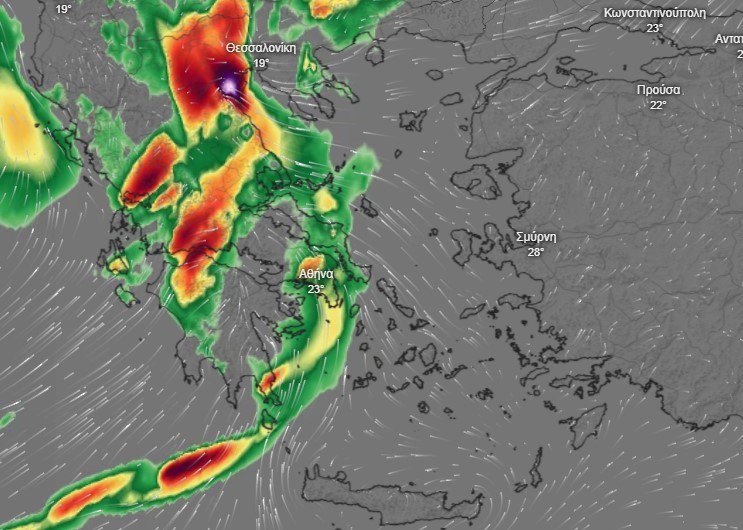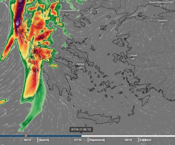 Δείτε σε πραγματικό χρόνο πώς θα κινηθεί η κακοκαιρία, σύμφωνα με την πρόβλεψη της windy:
