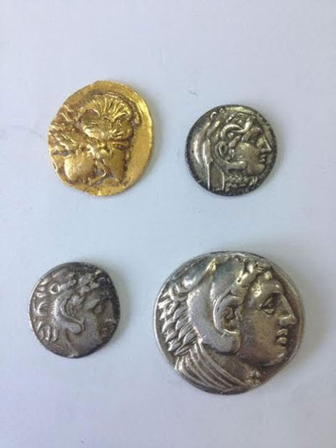 • Τέσσερα (4) αρχαία νομίσματα, εκ των οποίων ένα χρυσό και τρία ασημένια,