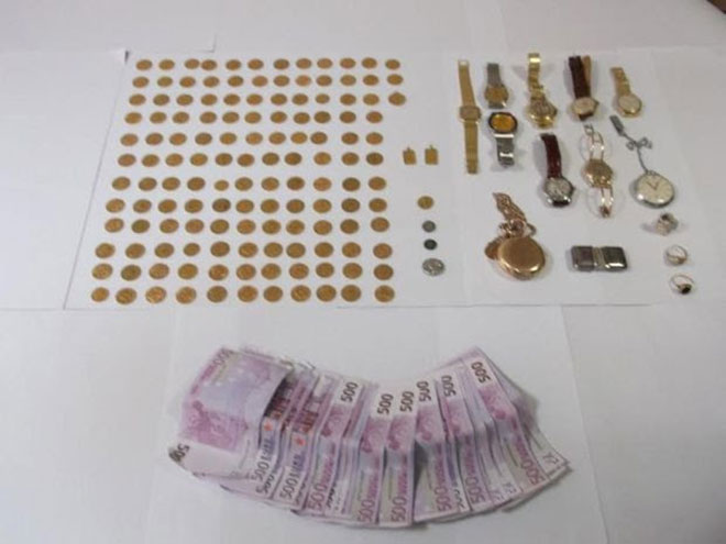 Επιπλέον κατασχέθηκαν 127 χρυσές λίρες, μεγάλης χρηματικής αξίας, 9 χρυσά νομίσματα διαφόρων κρατών, το χρηματικό ποσό των 12.000 ευρώ και πλήθος τιμαλφών.