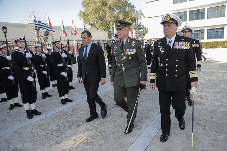 Πραγματοποιήθηκε στη Σχολή Ναυτικών Δοκιμών στον Πειραιά η τελετή παράδοσης-παραλαβής καθηκόντων Αρχηγού του Γενικού Επιτελείου Ναυτικού με τον Ναύαρχο Νικόλαο Τσούνη να παραδίδει στον Αντιναύαρχο Στυλιανό Πετράκη (ΠΝ).