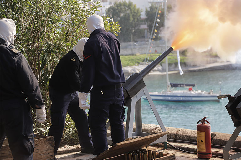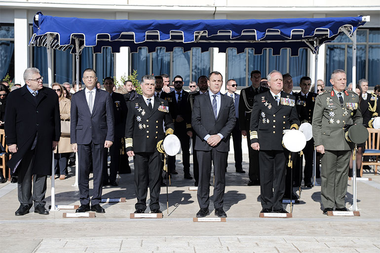 Στην τελετή χοροστάτησε ο Μητροπολίτης Πειραιώς κ.κ. Σεραφείμ και παρέστησαν η πολιτική και στρατιωτική ηγεσία των Ενόπλων Δυνάμεων και των Σωμάτων Ασφαλείας, μέλη της κυβέρνησης, του Κοινοβουλίου και της τοπικής αυτοδιοίκησης, αντιπροσωπείες ξένων κρατών, μέλη της ευρύτερης Ναυτικής και Ναυτιλιακής κοινότητας, αντιπροσωπείες Αξιωματικών και Υπαξιωματικών από όλους τους κλάδους των Ε.Δ και Σ.Α και αντιπροσωπείες σπουδαστών Στρατιωτικών Σχολών.