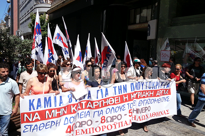 Η ΓΣΕΒΕΕ κάλεσε σε διαμαρτυρία τους εμπόρους που αντιδρούν στο μέτρο. Από τις 11 το πρωί βρίσκονται στην Ερμού, ενώ σε απεργία προχωρά η Ομοσπονδία Ιδιωτικών υπαλλήλων Ελλάδας.