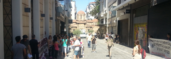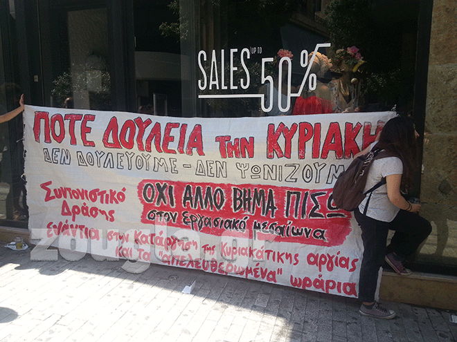 Mάλιστα, κάποιοι διαδηλωτές εισήλθαν σε ανοιχτό κατάστημα και ζήτησαν από τους καταναλωτές να εξέλθουν από αυτό, στο πλαίσιο της απεργιακής κινητοποίησης.