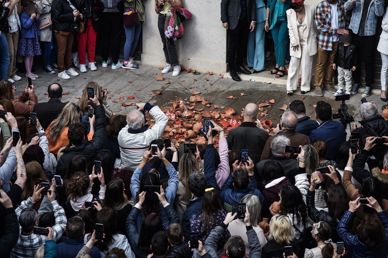 Το έθιμο με το σπάσιμο των πήλινων με αφορμή την πρώτη Ανάσταση, αναβίωσε το πρωί του Μεγάλου Σαββάτου στα πλακόστρωτα στενά του ιστορικού κέντρου της Πρέβεζας.