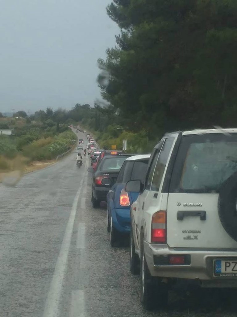 Παράλληλα κατά τη διάρκεια της έντονης βροχόπτωσης, ξέσπασε φωτιά από κεραυνό σε πευκόφυτη περιοχή στον οικισμό Ριζά.