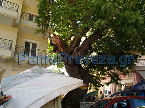 Από θαύμα δεν θρηνήσαμε θύματα πριν από λίγη ώρα στην Πρέβεζα, όταν κόπηκε ένα μεγάλο κλαδί από πλάτανο στην οδό Π. Τσαλδάρη. Ο πλάτανος αυτός, που είναι από τους γηραιότερους μέσα στην πόλη, βρίσκεται σε έναν από τους πολυσύχναστους δρόμους της Πρέβεζας.