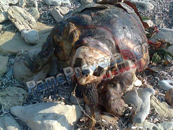 Μια νεκρή θαλάσσια χελώνα εντοπίστηκε την Πέμπτη από λουόμενους σήμερα στην παραλία του Καναλίου στην Πρέβεζα.