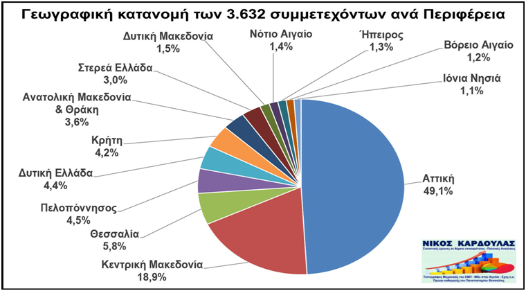 Η γεωγραφική κατανομή των 3.632 συμμετεχόντων στην έρευνα στις 13 Περιφέρειες της χώρας φαίνεται στο παρακάτω γράφημα: