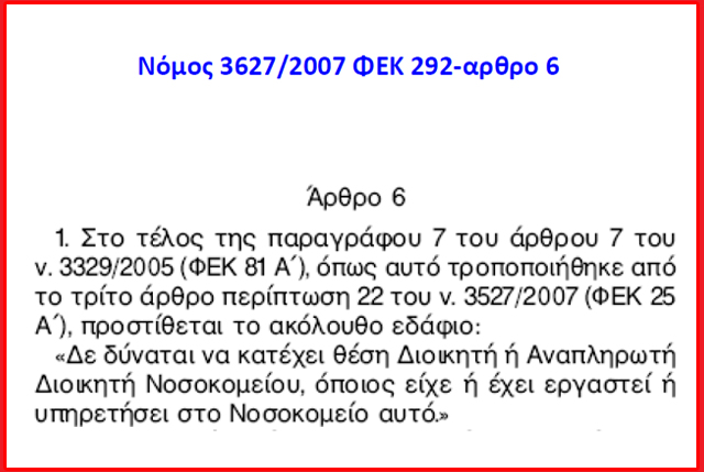 Πρόκειται για καταφανώς παράνομο διορισμό, αφού ο νόμος 3627/2007 απαγορεύει ρητά τον επαναδιορισμό σε όσους έχουν ήδη υπηρετήσει σε δημόσιο νοσοκομείο.