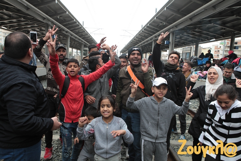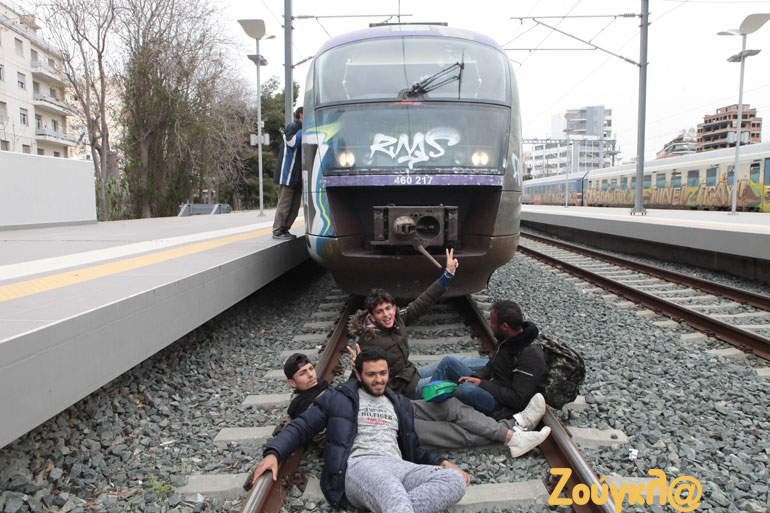Οι πρόσφυγες, ανάμεσα στους οποίους υπάρχουν γυναίκες και παιδιά, έχουν καθίσει πάνω στις ράγες και ζητούν να έρθουν λεωφορεία για να τους μεταφέρουν στα Διαβατά Θεσσαλονίκης.