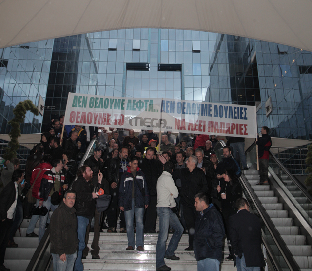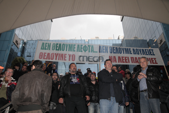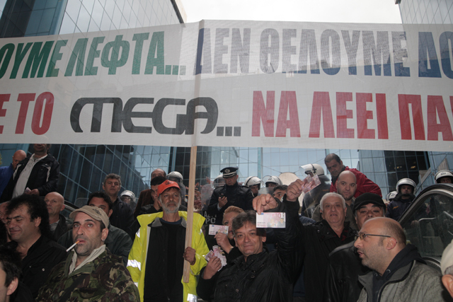 Η Εκτελεστική Επιτροπή της ΠΟΕ – ΟΤΑ πραγματοποίησε σήμερα το πρωί συγκέντρωση διαμαρτυρίας στην είσοδο των εγκαταστάσεων του τηλεοπτικού σταθμού Mega Channel.
