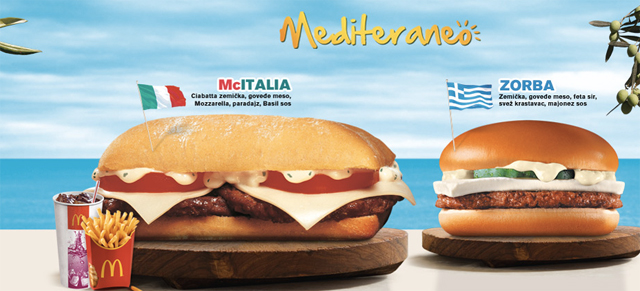 Έτσι, η αλυσίδα εστίασης «McDonald’s» με τα γνωστά παγκοσμίως χάμπουργκερ, λάνσαρε στη βαλκανική αυτή πρωτεύουσα με πόστερ και διαφημίσεις δύο νέα προϊόντα. Το ένα «Italia» περιέχει μοτσαρέλα, το γνωστό τυροκομικό προϊόν από βουβαλίσιο γάλα (τουλάχιστον ως προς την παραδοσιακή παρασκευή του).