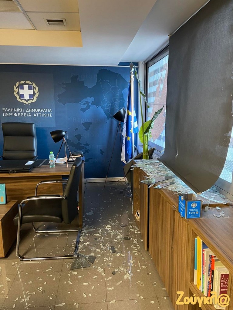 Υλικές ζημιές προκλήθηκαν ακόμα και στον εσωτερικό χώρο του κτηρίου όπου στεγάζεται η Περιφέρεια Αττικής, από την ισχυρή έκρηξη που σημειώθηκε το πρωί της Τετάρτης, σε ημιώροφο εξαώροφου κτηρίου επί της λεωφόρου Συγγρού 3.