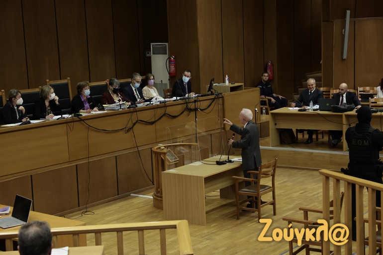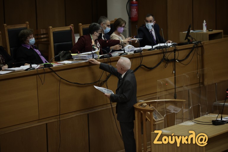 Αμέσως μετά την εκφώνηση των ονομάτων των κατηγορουμένων, ο συνήγορος του Γιάννη Λαγού, Κώστας Πλεύρης, παρουσία των δικαστών, ζήτησε τον λόγο και μίλησε για «αυνάνες της αριστεράς», επαναλαμβάνοντας το ναζιστικό χαιρετισμό του.