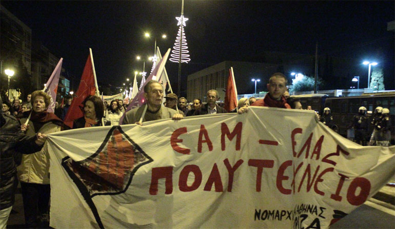 Στο σημείο προκλήθηκε μικροένταση με αποτέλεσμα διαδηλωτές να έρθουν στα χέρια αλλά και να ακουστούν ειρωνικά συνθήματα κατά όσων αντιπροσώπευαν το μπλοκ του ΣΥΡΙΖΑ όπως «Το ΠΑΣΟΚ είναι εδώ ενωμένο δυνατό» και «Το Πολυτεχνείο ζει ζήτω οι Αμερικανοί».