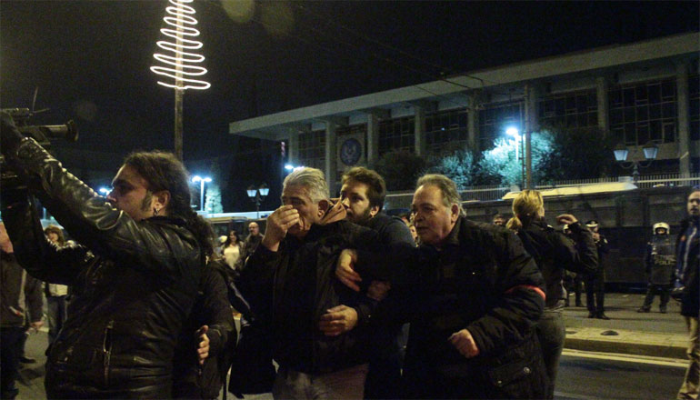 Όταν η κεφαλή της πορείας έφτασε έξω από την αμερικάνικη πρεσβεία προκλήθηκε ένταση καθώς οι διαδηλωτές που αποτελούσαν το μπλοκ του ΣΥΡΙΖΑ βρέθηκαν αντιμέτωποι με προπηλακισμούς και αποδοκιμασίες από συγκεντρωμένους που βρίσκονταν στο πεζοδρόμιο απέναντι από την πρεσβεία.