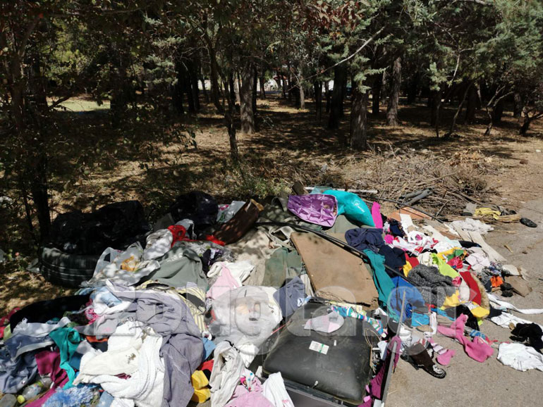 Απορρίμματα έχουν διασπαρθεί σε ακτίνα μερικών δεκάδων μέτρων και εντός του παρακείμενου αλσυλλίου.