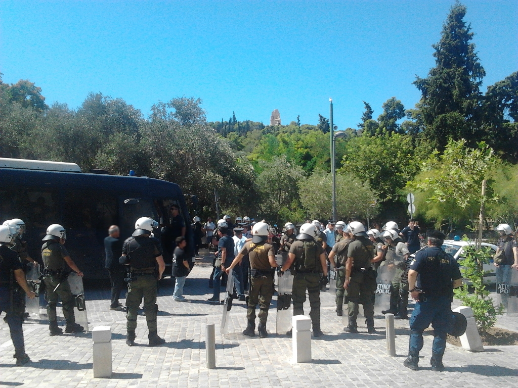 Στην προσαγωγή 60 περίπου μελών της Χρυσής Αυγής, που βρέθηκαν το πρωί στον αρχαιολογικό χώρο της Ακρόπολης και μοίραζαν φυλλάδια πολιτικού περιεχομένου, προχώρησαν οι δυνάμεις της αστυνομίας. Οι προσαχθέντες έχουν μεταφερθεί στη Γενική Αστυνομική Διεύθυνση Αττικής.