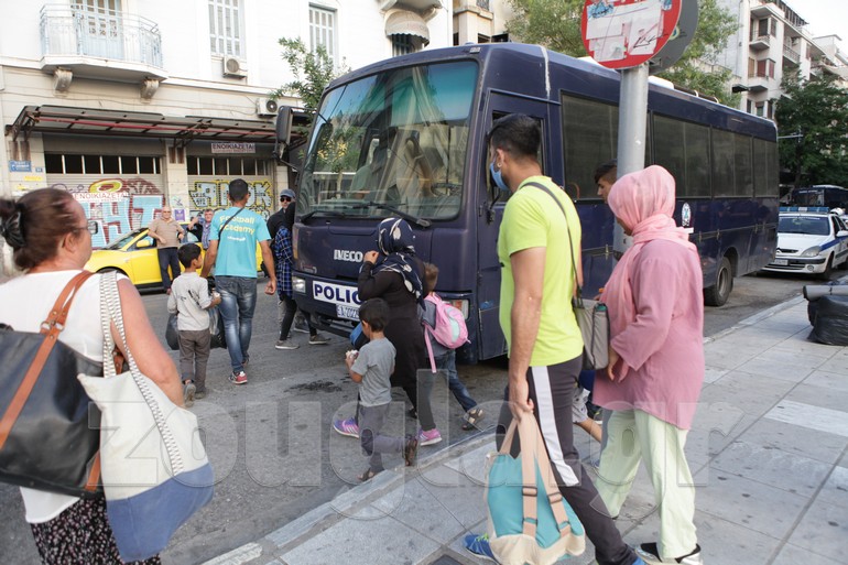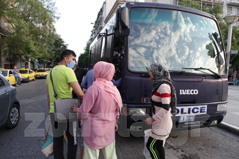 Αργά το απόγευμα άρχισε η μεταφορά τους στο κέντρο υποδοχής του Σχιστού στον Σκαραμαγκά με λεωφορεία της Αστυνομίας.